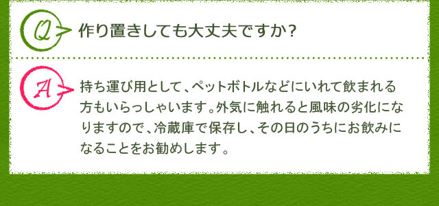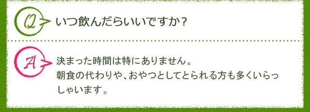 | 使用上のご注意 | ●体質に合わない方は、使用を中止してください。 ●食物アレルギーのある方は原材料表示をご参照ください。 ●通院・入院中の方や妊娠中の方は、ご使用になる前に医師にご相談ください。 ●本品は吸湿性の高い粉末タイプのため、開封した小袋は一度に使い切ってください。 ●本品は原材料の特性上、季節等により若干の色・性状の変化がみられますが、品質には問題ありません。 食生活は、主食、主菜、副菜を基本に、食事のバランスを。 |