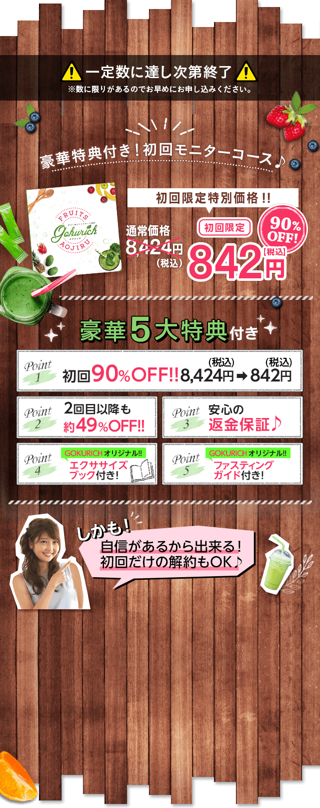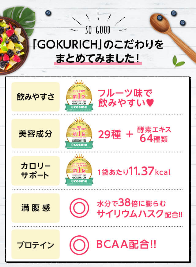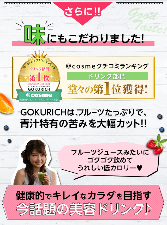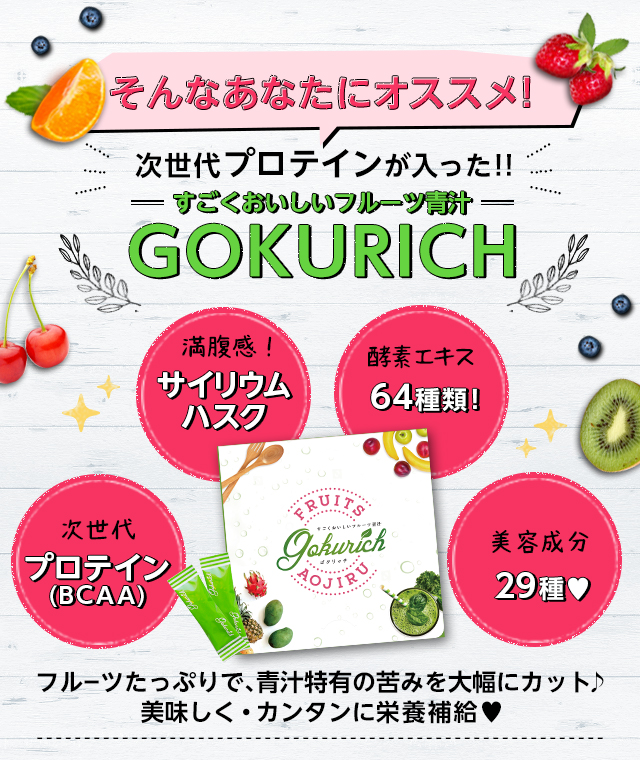 | 商品名 | すごくおいしいフルーツ青汁 GOKU RICH |